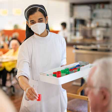 Ein Team von rund 650 Mitarbeiterinnen und Mitarbeitern kümmert sich gemeinsam um die uns anvertrauten Pflegebedürftigen, gemäß unserem Motto „Wir pflegen Menschlichkeit“